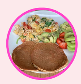-2 huevos completos, revueltos con tomates, cebolla y espinaca.